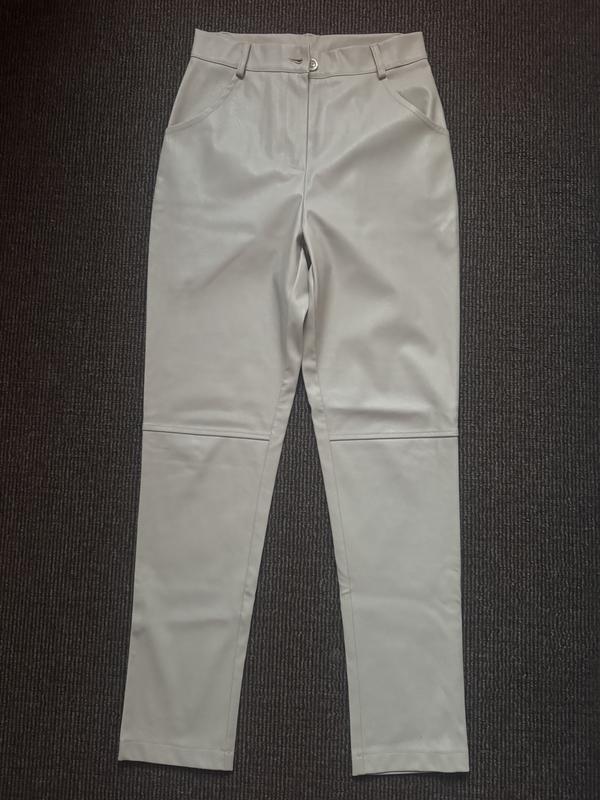 Шкіряні штани розмір с, є нюанс ( коли одягнено не видно) довжина 102/72 см пот 34 см поб 46 см трохи тягнеться,