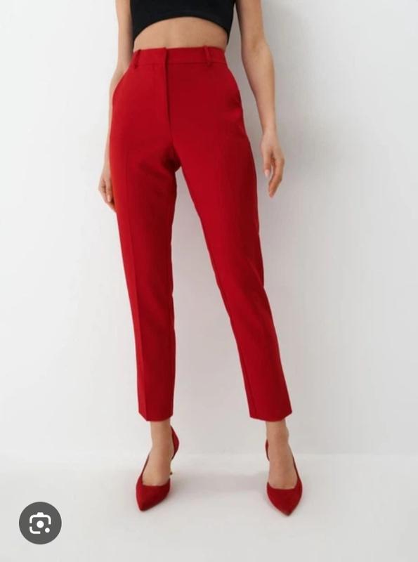 брюки на размер 48-50, замеры от 45-48 см, бедра 59-63 см, длина 100 см,в реале на тон более темные,насыщенного красного цвета такие как на фото из каталога (то что фотовспышках на тон засветит цвет )
