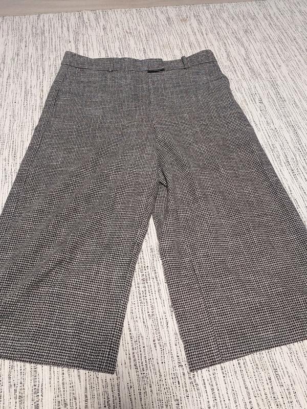 Широкие кюлоты- дворцово,плотная ткань, классичей крой, ПОТ 46 см, ПОБ 55СМ, длина 82 см, ширина штанины (один по всей длине) 33см, принт-мелкая гусиная лапка. Состав ткани указирую на глаз.Качественное исполнение изделия,думаю, доказывает наличие натурального элемента в составе