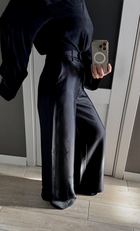 Брюки вільні з високою посадкою, на фото одягнені на розмір S , ПОТ- 34 см, ПОС -51 см, довжина - 107 см, ширина штанини зверху - 32 см, внизу - 35 см, дуже стильно виглядаюсть в ідеальному стані 🎉