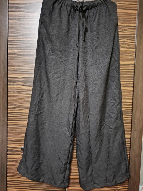 Продам широкие брюки Musera на весну -лето. Длина по внешнему шву 104, длина по внутреннему шву 79, полуобхват талии 31, растягивается до 46, полуобхват бедер 55, низ штанины 34 см