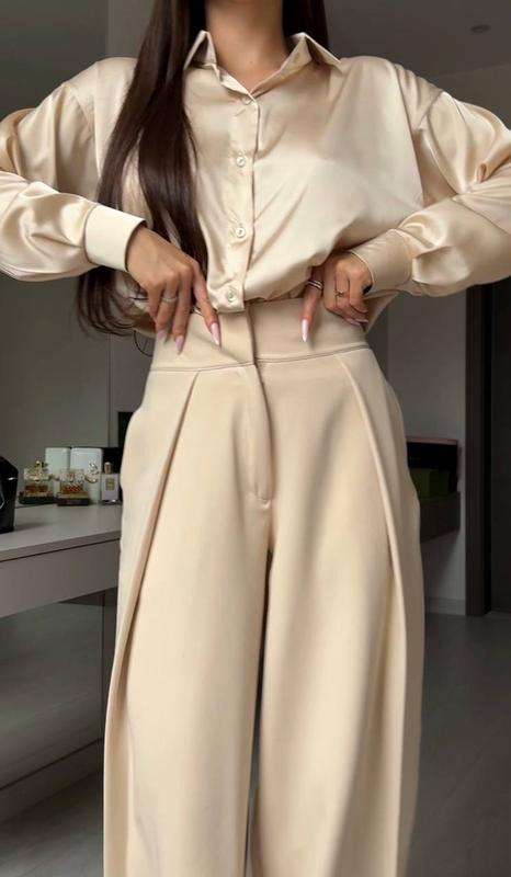 ✔️Хіт сезону✔️ Брюки🤍 📸Реальні огляди ☑️Модель 409 ☑️Тканина: Костюмка ☑️Розміри: 42-44; 46-48; 50-52 ☑️Кольори: чорний, шоколад, бежевий Стильні широкі брюки з високою посадкою та акуратними складками. Чудово тримають форму, підкреслюють талію й роблять силует витонченим. Легко комбінуються з топами, светрами та жакетами — ідеальний варіант для офісу, міста та повсякденних образів❤️