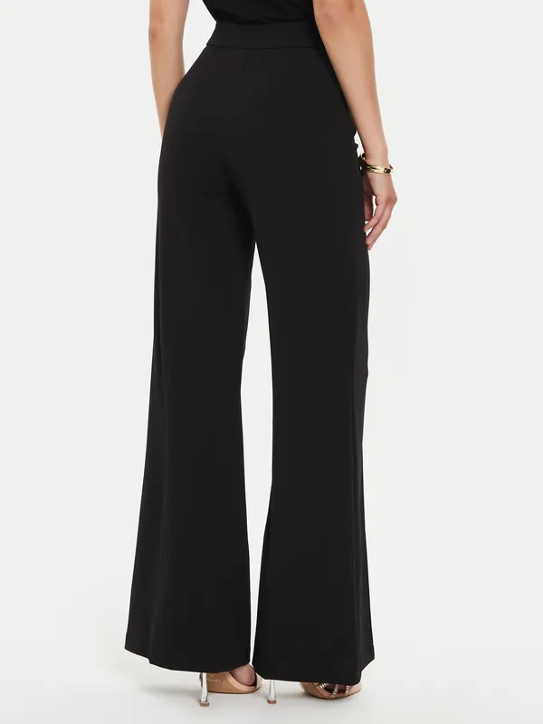Брюки оригінальні Rinascimento Модель клеш, черные, ткань (вискоза) тоненькая и хорошо тянется, классно ложится по фигуре и повторяет движения тела. Ширина пояса 40 см Высота пояса 20 см (можно носить высокой посадкой, а можно с отворотом, на отвороте корона из страз) НОС 47 см Длина штанины по внешнему шву 91 см Длина штанины по внутреннему шву 73 см Ширина штанины внизу 34 см