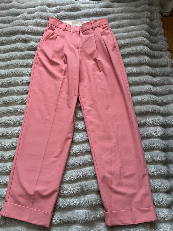 Класичний фасон з защипами спереду Висока посадка Прямі, з підворотом внизу Є кишені Щільна костюмна тканина, тримає форму