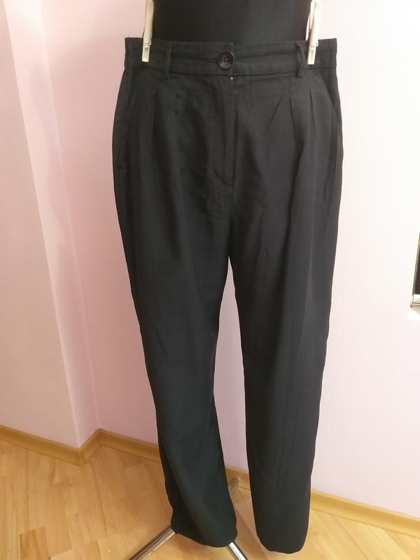 Стильные, классические брюки.Легкая висковща,не тянется.Пот 40-44см, поб 60 см, крок 77 см, длина 107 см.Фасон в виде момы.Стан без дефектов, б/у.