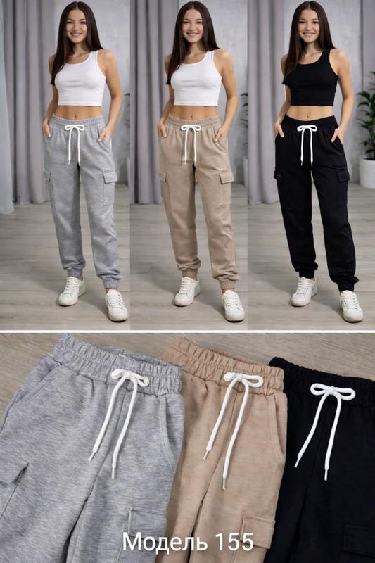 Новинка ❤️❤️❤️ Твой идеальный комфорт. Базовые брюки свободного кроя с высокой посадкой, снизу манжетами и накладными карманами 💛Фасон: Свободный крой с манжетом. 💛Детали: Эластичный пояс на завязках для идеальной посадки. 💛Цвета: классический черный, базовый серый и теплый беж. 💛Материал: Мягкий трикотаж Modal, приятный к телу. Модель 155 Размеры (S-M),(L-Xl),(2xl-3xl) Замеры 📌Обхват талии (S-M)-68-108см, (L-Xl)-72-112см, (2xl-3xl)-76-116см, 📌Обхват стегон (S-M)-104см, (L-Xl)-106см, (2xl-3xl)-108см, 📌Длина (S-M)-95см, (L-Xl)-96см, (2xl-3xl)-97см,