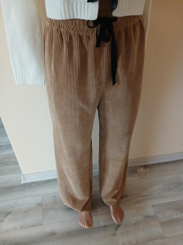 Весенние брюки в крупный рубчик известного бренда. Размер XS-S.Длина 103 см,пояс 33 см,бедра 47 см.