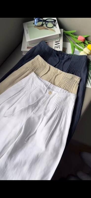 Брюки Модель GR 83171 Цена опт : 799 грн Размеры : 42-44; 46-48; 50-52 Цвет: беж, синий, белый, Ткань : турецкий лён Брюки -стиль палаццо - широкие, имеют высокую посадку, застегиваются на молнию, в поясе резинка по спинке. Имеют карманы. Размер 42-44 Объем талии - 66 см + 8-10 см ( резинка ) Объем бедер - 106 см Внутренний шов - 77 см Длина - 107 см Размер 46-48 Объем талии - 72 см + 8-10 см ( резинка ) Объем бедер - 112 см Внутренний шов - 78 см Длина - 108 см Размер 50-52 Объем талии - 78 см + 8-10 см ( резинка ) Объем бедер - 118 см Внутренний шов - 78 см Длина - 109 см