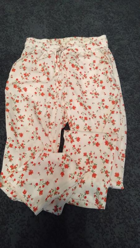 Легкие брюки на лето, в нежные цветочки, очень мило и стильно выглядят, Спереди стягиваются, по бокам функциональные карманы. Состояние идеал. ОТ 33 ОБ 46 Посадка 24 Длина 90