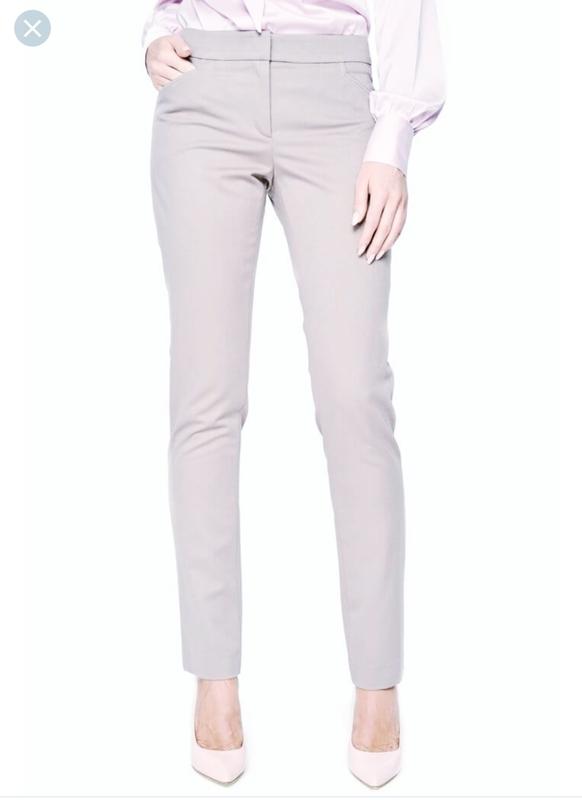 Брюки сірого кольору, прямі до низу. Збоку два косих кишені.Ззаду імітація кишень. ПІТ 40, ПОБІДИ 50, висота посадки 22/31, довжина 104 див. Підійде на наш 46 розмір.