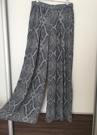 Брюки H&M , тканина поліестер ,пояс на резинці розмір 6{ S, може і на М}.Замірт: ПОТ 34 тягнеться до 45, ПО штанини в верху 36, довжина по внут. шву 68 , по боковому шву 101см.