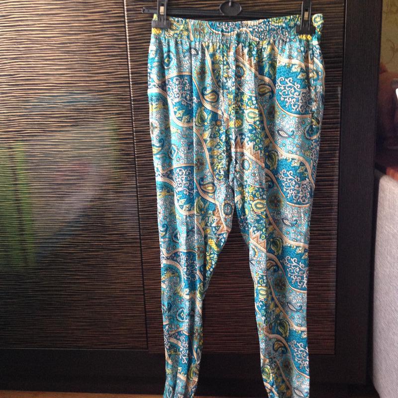 Штанишки Amisu, размер указанный 40, 100% вискоза, есть карманы, ПОП 38см, легкая резинка, ПОБ 51см, посадка 32см, длина 99см, ширина штанины по низу 15см, обмен нет