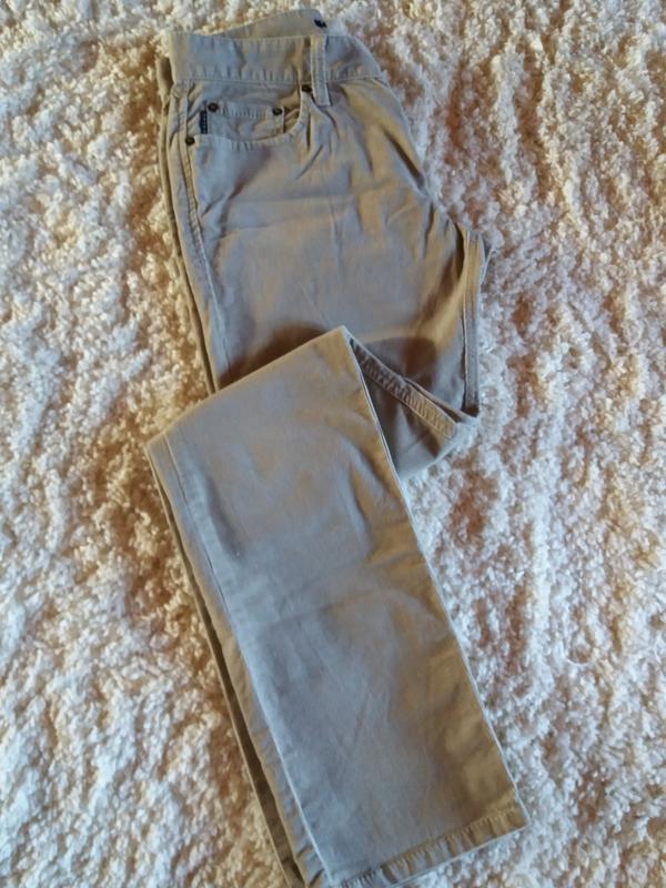 Бежевые вельветовые брюки.стан новых. длина 105см. пояс 38. бедра 48см. посадка з переду 24 см, заду 31 см, , ширина штанини внизу 18 см.