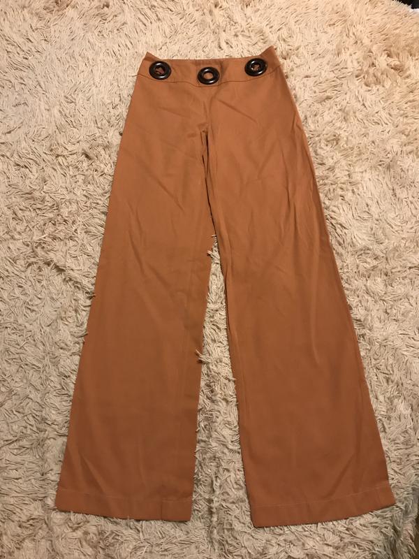 Брюки в ідеальному стані, на поясі кольца, самого поясу не маю{ Розмір вказаний 4 { xs, s} Тканина не тягнеться.