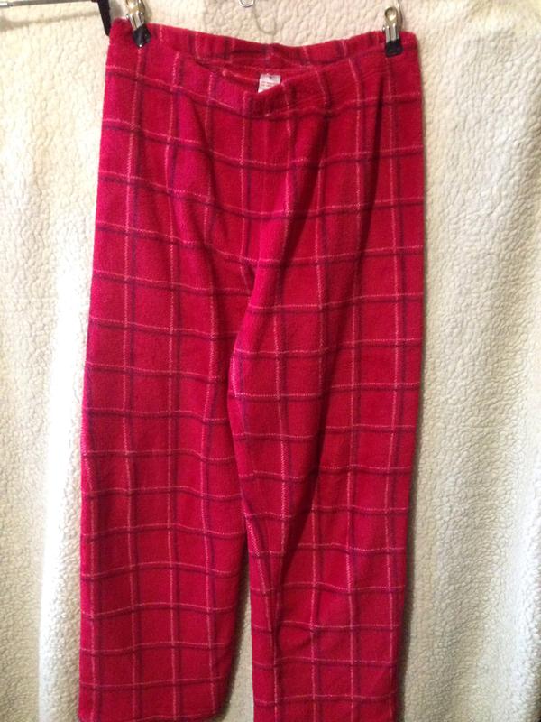 Брюки(М)красного цвета 100% полиэстер,длина 100;П.О.талии 39;П.О.бёдер 59;посадка 57;длина шагового шва 72