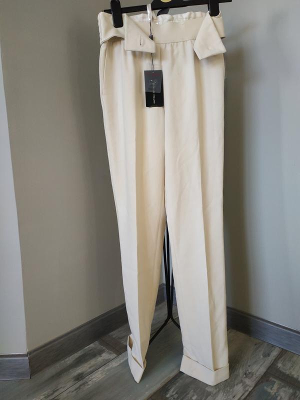 Брюки Ashley Brooke Брюки из плотной ткани Ashley Brooke. Новые с бумаж.бирками. Цвет молочный, состав ткани на фото(стирать можно),размер 36(s), по замерам на 38(м).Пояс широкая резинка с большой дукоративной пуговицей, карманы, манжеты, высокая посадка. Лежат классно (шикарная ткань ) ПОТ 34см(тянется до 40см), ПОБ 50см, посадка 43/27см, длинна по внутреннему шву 78см, по внутреннему 105см, ширина штанины снизу 18см.