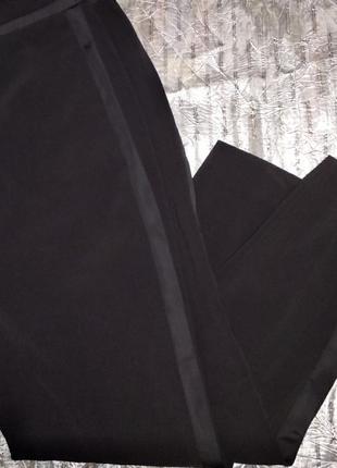 Брюки женские укороченные. Боковые карманы и задние, застёжка молния, крючок. Лампасы и вставки на поясе и карманах из гладкой ткани.