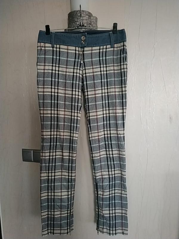 стильные,мягкие брючки в клетку.Внизу змейки.Карманы.Слегка тянутся.ПОТ40 ПОБ48 Посадка22Длина104 Ширина штанины снизу 19.Заявлен 40,но маломерят,сверяйте замеры