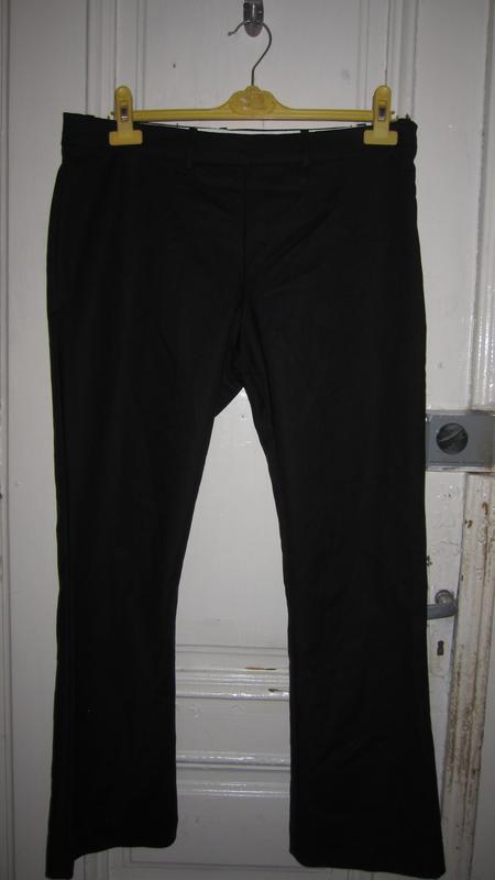 брюки черного цвета.75 полиэстер 25 хлопок.ПОТ 45.ПОБ 55.длина 96.посадка спереди 28.сзади 39.длина по внутреннему шву 72см.ширина по низу23см.застежка сбоку.стрейч