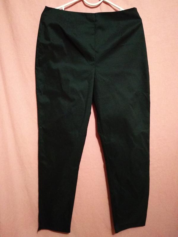 Брюки укороченные.Застёжка молния, сбоку разрезы на штанинах.Ткань хорошо тянется,в талии не тянется.В идеальном состоянии.Замеры по запросу.