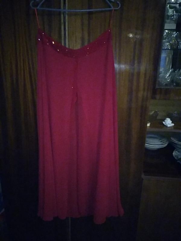 вечірні штани розмір 42 штани стрейч, зверху як спідниця шифон поясок розшитий бісером один недолік десь не десь відірвався бісер довжина 105 см ширина пояса 86 виробник Туреччина