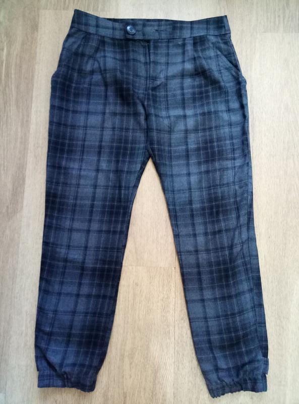 Длина 94, талия 44, бедра 57 см. Брюки в клетку, материал средний, на мажетах.
