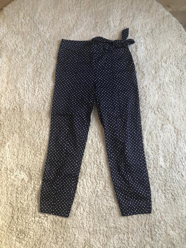 Очень классные стильные штанишки Зара . Французкая длина ,цвет темно-синий ,сбоку красивый аккуратный бантик ,застежка тоже сбоку . Размер S