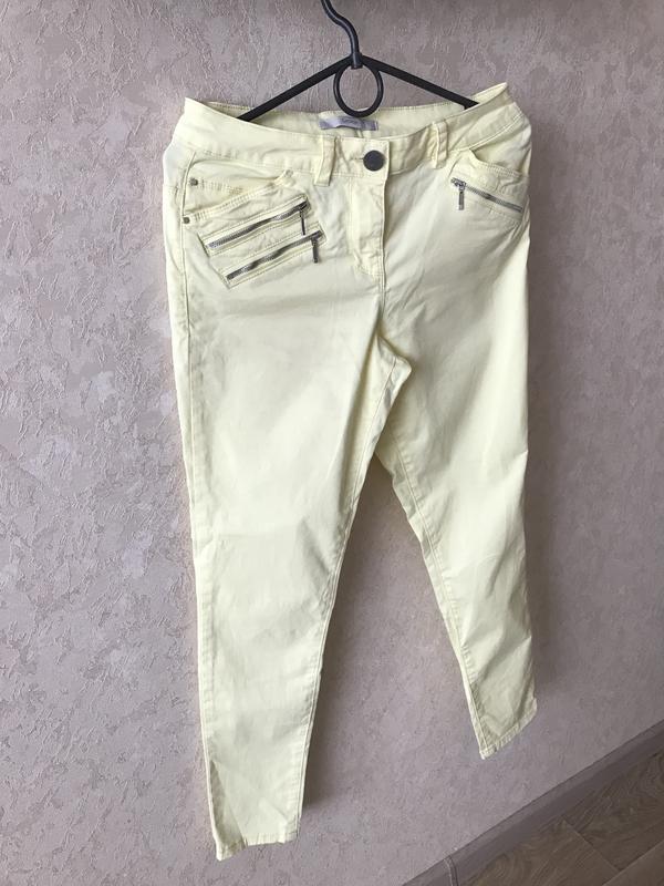 George летние укороченые женские брюки, цвет нежный желтый, в живую немного ярче и красивее чем на фото, качество супер 98% коттон 2% эластен, дорогая фурнитура, б/у, одеты два раза, в состоянии Новой вещи без каких-либо недостатков. Покупала для себя, но набрала вес и уже малы... Размер UK 8, EUR 36 Замеры: Длина 91 см ПОТ 38 см ПОБ 45 см Посадка 27 см