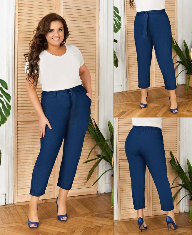 предоплата 100 %💰 Брюки Elis Модель : 4081 - Размеры: 1(48-50), 2(52-54), 3(56-58) - Длина по боковому шву: 95 см - Длина по шаговому шву: 65 см - Материал: тонкий джинс . І моделі є лен - Цвета: голубой, синий, марсала - Брюки на резинке, декоративный пояс в комплекте - Цена : 360 грн - Зауженные к низу брюки с высокой посадкой, манжетами и карманами, выполнены из джинсовой тонкой ткани, на резинке, декоративный пояс с регулируемой длиной в комплекте