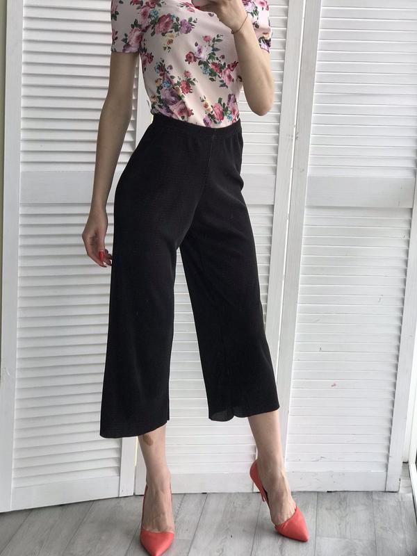 Чорні кюлоти для худенької особини. Є нюанс - видно на останньому фото. Довжина 0.85 см Пояс на резинці.В нерозтягнутому вигляді 0.62 см і тягнеться до 0.90 див.