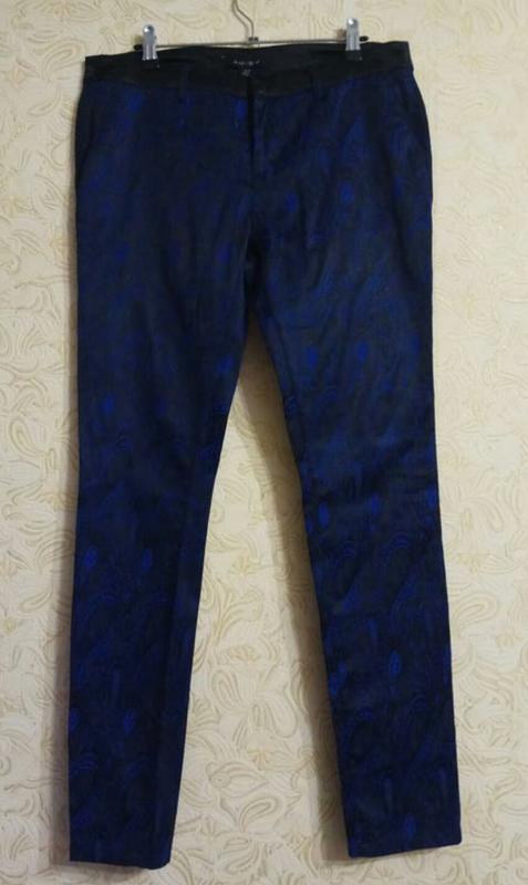 Брюки 46-50 р-ра.зауженные,в актуальный принт, сочетание черного,синего и светло-синего цветов, классическая модель.В фасоне есть боковые карманы, по линии талии и карманов черная отделка.Реальный цвет фото 3. Состав:котон, полиэстер,эластан. Замеры: талия 42/44 см.; посадка 24,5/28,5 см.; бедра 47-51 см.; шаговая 77 см.; дл.производства 100 см; ширина штанины внизу 13,5 см. Перешлаю после 100% оплаты на карту. Отправлю Новой или Укр.почтой. По дополнительной информации обратитесь. Смотрите мое другое объявления.