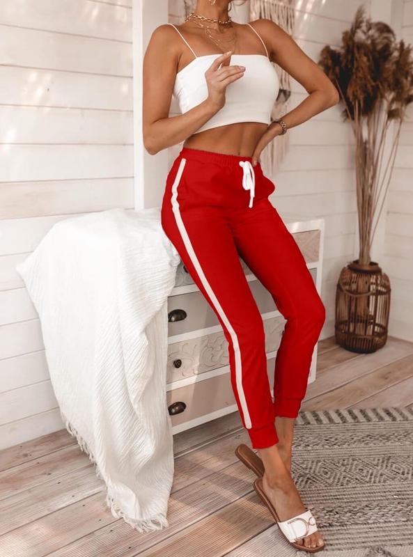 Штаны Описание: ▪Цена ▪Ткань: трикотаж ▪Размер: S-М, М-L ▪Цвет: чёрный, красный, беж, пудра, желтый, лиловый ▪Сезон:лето Категория:брюки 📌 Штаны свободного кроя на резинке, с карманами, декорированы шнурком и тесьмой по внешнему шву. Манжеты так же на резинке. Ткань хорошо тянется.
