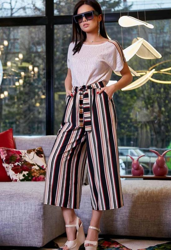 Винтажные штаны брюки кюлоты в полоску на завязках на лето!
