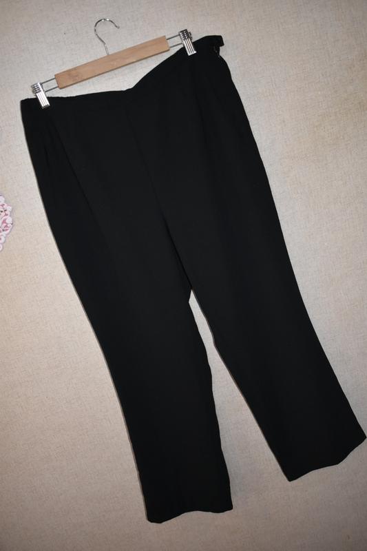 Лёгкие брюки на лето. В отличном состоянии, есть сзади внизу нюанс несколько точек, как от утюга. На вид не влияет, не выделяются. Всё остальное в идеале.Брюки с карманами, сбоку застегивается на молнию. Замеры пояс 43 см, тянется до 49 см. ПОБ 59 см. Посадка 35/38 см. Длина полностью 101 см. Шаговая 73 см.