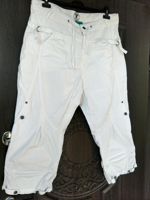 Очень класные брюки. Много декоративных элементов. по талии и линии бедер можно регулировать поясками.и завязками. талия 50 бедра 60 длина 92