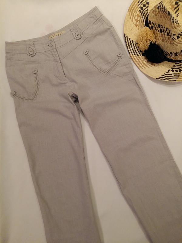 Гарні штани на спеку. Легені, у складі бавовна і льон. Красиво і в міру прикрашені вишивкою та ґудзичками. Якість супер. Без нюансів. Заміри: ПІТ 39, ПОБІДИ 51, посадка спереду 25, довжина 102, крок 78. Повернення та обміну немає.