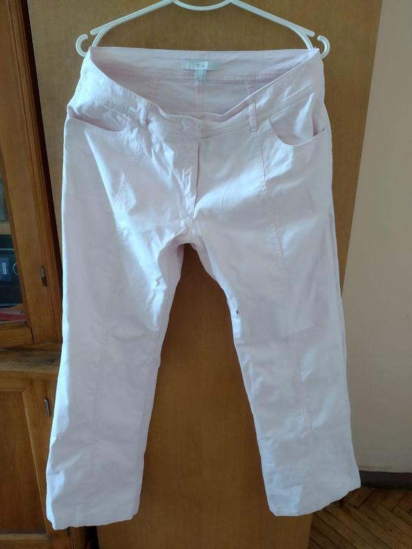Отличные летние брючки, цвет нежно-розовый, ПОТ 44,5, ПОБ 51, длина 104, немного клеш, ширина в колене 24, внизу 29. Не тянутся. Ткань как летние джинсы. Размеры указаны D/NL 44, GB 18, F 46, I 48, CZ/PL 44