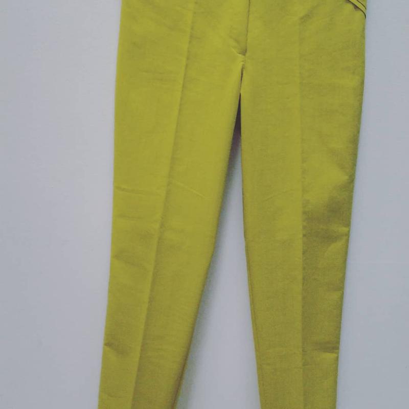 брюки турецкой фирмы "DEVATEX"из натуральной ткани (:хлопок-66%), с высокой посадкой и зауженные к низу. длина брюк 99см. ширина по низу 17см. в пояс вставлена широкая резинка, что обеспечивает хорошую посадку по талии.цвет брюк такой как на фото - яркий!