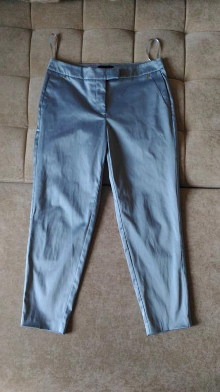 Брюки чинос лилового цвета River Island серо-голубые из отливов под атлас размер 8 Длина 87см Шаг, внутренний шов 64см Посадка спереди 24см, сзади 35см Замеры без натяжения и с натяжением: Полуобхват талии 41см Полуобхват бедер 51см Ширина штанины внизу 15см, вверху 30см Застежка молния Румыния Карманы обманки