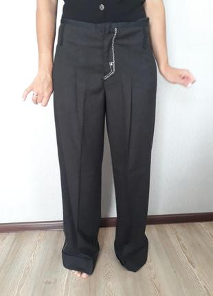 Продам класичні брюки чорного кольору з білою строчкою. Одягнені на зріст 172 см. Кроковий шов 81 см Посадка 25 см Ширина штаніни 33 см ПТ 41 см ПБ 52 см