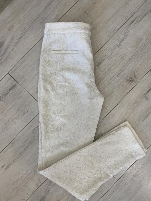 Брюки кружевные на подкладке, молочного цвета, посадка средняя. Не просвещается. Размер 42