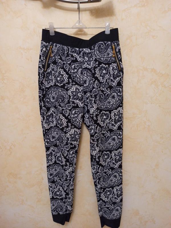 Длина изделия 98см,пот 36см,пояс резинка,поб 49см, высота посадки спереди 29см, сзади 32см,хорошо тянутся.