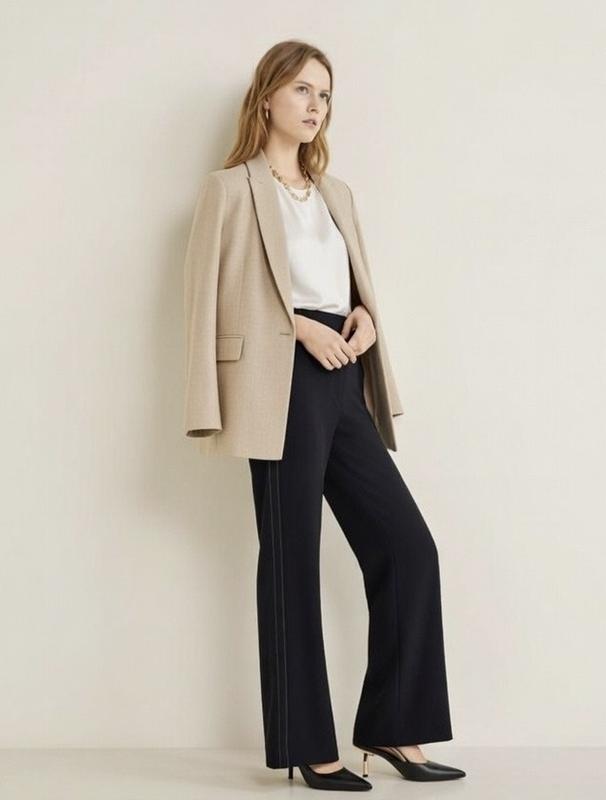 Вільні брюки - палаццо 🄼🄰🄽🄶🄾 Еластична талія (резинка).Імітація блискавки і гудзики. Декоративна строчка збоку. Склад :100% Поліестер. Заміри S📏 Довжина 108см Довжина штанини 80см Талія 36 см Стегна 46см Низ 27см