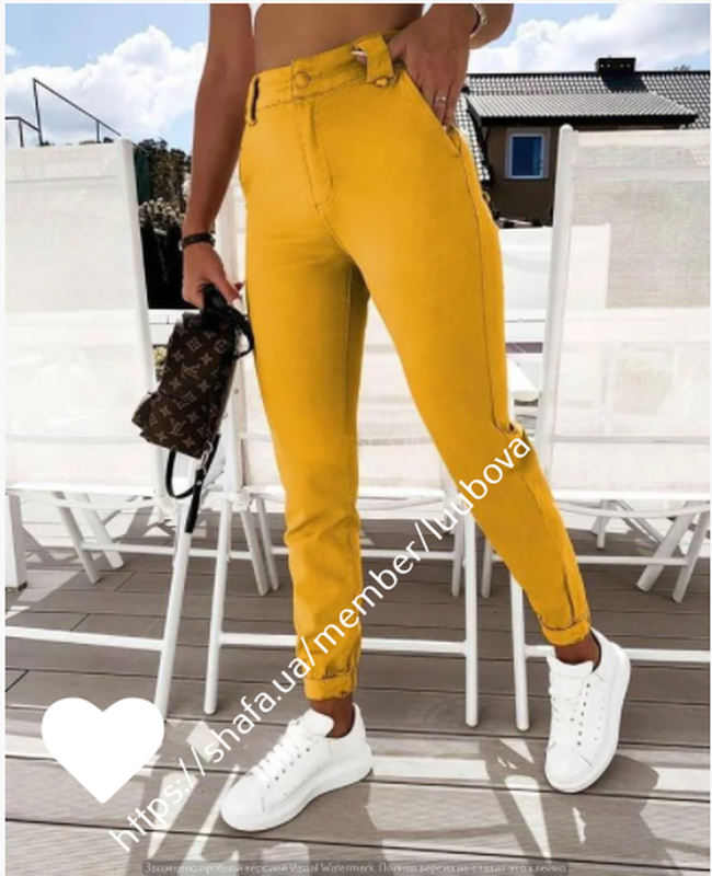 ❤️ https://shafa.ua/member/luubova❤️ (105) Давно мечтаете о стильных штанах, но цены кусаются, а от изобилия моделей голова идет кругом? Без паники! Интернет-магазин https://shafa.ua/member/luubova выручит в любой ситуации, ведь в ассортименте товаров множество модных моделей по самой демократичной цене. Обратите внимание на новые женские джоггеры – это бескомпромиссный хит сезона! Женские стрейчевые брюки модного фасона хорошо садятся по фигуре любой комплекции. Джоггеры имеют высокую посадку и пояс на резинке (сзади), спереди застегиваются на пуговицу. Отличительная черта такого фасона – резинки внизу на штанинах. Спереди и сзади есть по два кармана. Изготовлены брюки-джоггеры из стрейчевого джинс-бенталина. Этот материал очень хорошо тянется, легко принимает форму тела и прост в уходе. Модель хорошо сочетается с любой одеждой и обувью, поэтому может быть хорошей базой для повседневных образов. В наличии есть четыре варианта цвета, выбирайте свой и жмите на "Купить"! Мы предлагаем самые приятные цены: быстрая обработка заказов; отправка посылок в течение 24 часов; широкий ассортимент; приятные цены. С ТМ https://shafa.ua/member/luubova ваш шопинг приятный, а стиль самый яркий! Характеристики НОРМА Стиль:Спортивный Сезон:Весна/осень Длина шагового шва:71 см Длина бокового шва:99-101 см Материал:Джинс-бенгалин Таблица размеров Наличие на складе НОРМА Цвет 42 44 46 48 Черный ✓ ✓ ✓ ✓ Хаки ✓ ✓ ✓ ✓ Бежевый ✓ ✓ ✓ ✓ Горчичный ✓ ✓ ✓ ✓ Характеристики БАТАЛ Стиль:Спортивный Сезон:Весна/осень Длина шагового шва: 71-72 см Длина бокового шва:101-102 см Материал:Джинс-бенгалин Таблица размеров Наличие на складе БАТАЛ Цвет 50 52 Черный ✓ ✓ Хаки ✓ ✓ Бежевый ✓ ✓ Горчичный ✓ ✓ 🔝🔝🔝Отменное КАЧЕСТВО!!!🔝🔝🔝 Отправка: 1} по полной предоплате ✈️ Цвет в наличии