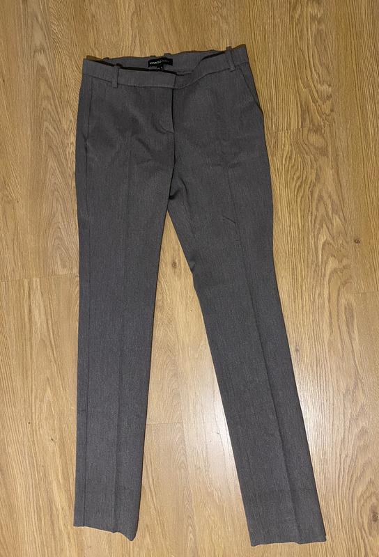 Зауженные брюки средней посадки 34 размера. ПОБ 43,5см, ПОТ 35см, посадка по шву 20 см. Дина по внутреннему шву 83см. Ширина штанины внизу 16 см. Носились мало т.к. велики