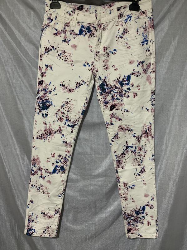 Бавовняні штани, трохи завужені до низу, практично не тягнуться, посадка середня. Заміри: довжина - 99см., по внутрішньому шву - 78см., ПОТ - 39см.,, ПОБ - 49см., глибина - 22/35см., ширина штанини по краю 15см
