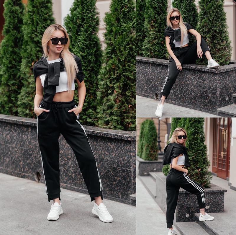 Тканина : трьохнитка на флісі Колір: чорний Розміри:42-44 --50-52 Довжина: 94/68 Тканина тягнеться