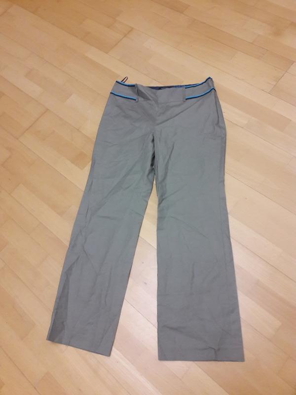 Брюки серо - бежевого цвета 16 L размера. Бренд Next. Пояс 47 см, ПОБ 56 см, длина 103 см, ширина внизу 27 см, вверху 33 см. Хлопок 97 %, эластан 3%.