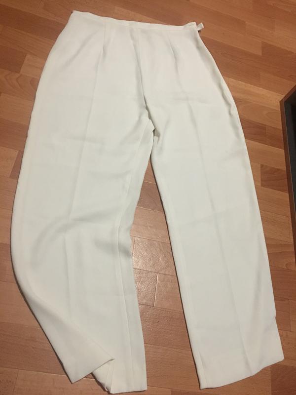 Белые легкие брюки,размер 14. Длина - 99 см,шаговый-67 см,по поясу -38,5 см,ПОБ-54 см
