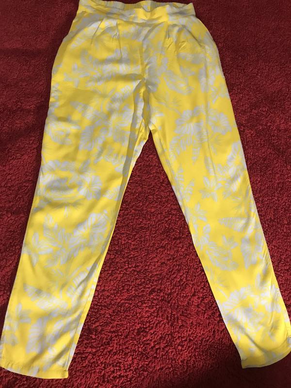 Брюки жёлто-серого цвета 100% вискоза с карманами; длина 93 см;п.о талии 35 см;высота силушки 34 см; ширина низа 14 см;п.о ширины бёдер 30 см